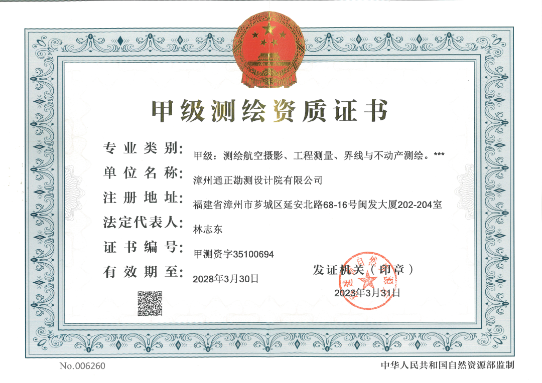 至此,交建集團所屬通正公司已具備測繪航空攝影、工程測量、界限與不動產測繪等三個專業測繪甲級資質,以及大地測量、攝影測量與遙感、海洋測繪、地理信息系統工程、地圖編制等五個專業測繪乙級資質。通正公司也是漳州市少數幾家同時擁有測繪(甲級資質)、設計(甲級資質)、勘察(乙級資質)、工程咨詢為一體的國有企業。