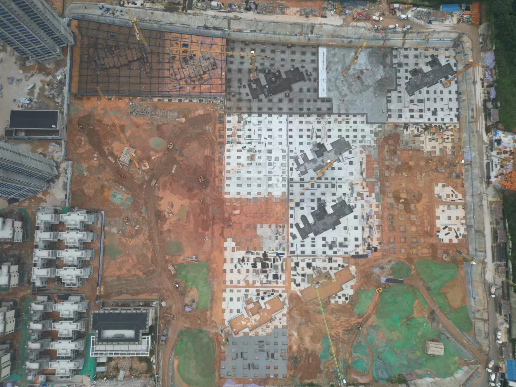 在項目施工現場,12臺塔吊、30余臺機械、700余名建設者在確保安全生產的前提下,克服雨季汛期等不利因素,24小時三班倒進行連續作業,推動項目建設全面提速、提檔進位,力爭6月底前完成地下室頂板“正負零”節點。